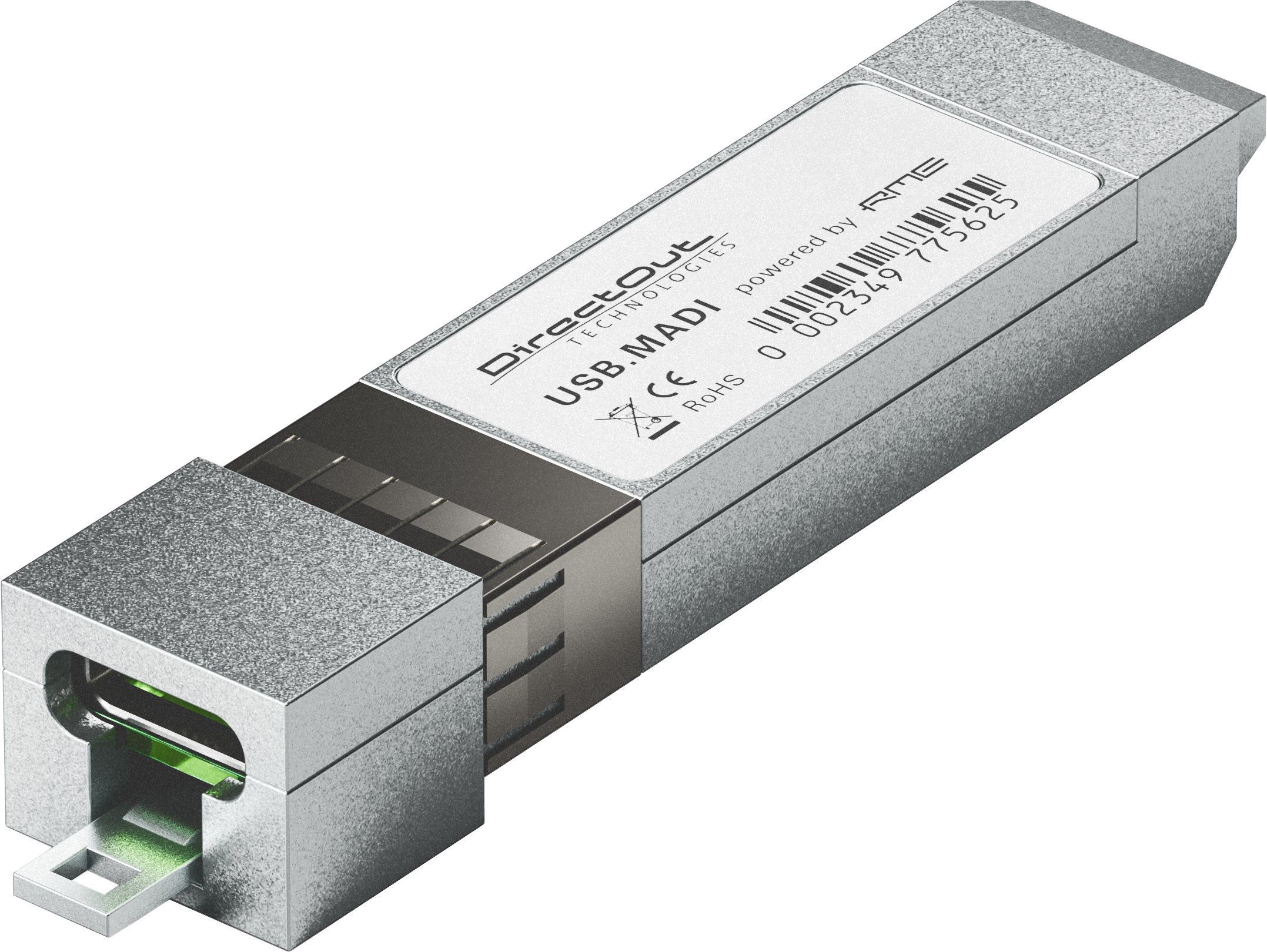 USB.MADI ist ein kompaktes SFP-Modul, das in Zusammenarbeit mit RME entwickelt wurde und eine vollständige USB-Audio-Schnittstelle bietet. Es wird direkt in einen DirectOut MADI SFP-Steckplatz eingesetzt und bietet einen USB-C-Anschluss mit 64 I/O Kanälen (@1fs) für zuverlässige Konnektivität.