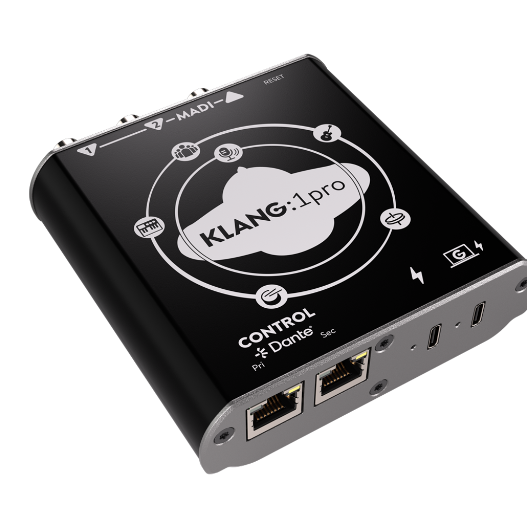 KLANG:1pro bietet zusätzlich Dante-Unterstützung und kann als Formatkonverter zwischen MADI und Dante eingesetzt werden – eine wertvolle Zusatzfunktion für Produktionen oder Monitorpersonal, welche grösstmögliche Flexibilität in Puncto Interoperabilität benötigen.